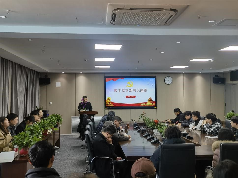 在教8-613召开党支部书记述职大会,院党委书记蔡长龙,党委副书记、纪委书记梁伟樯,副院长刘雪莲、吴杰,辅导员王国栋出席会议,会议由组织员、教工党支部书记陈丁主持。