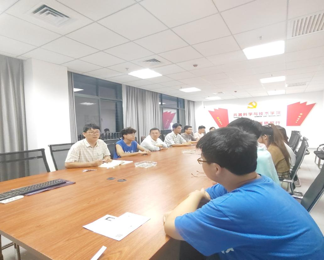 辅导员王国栋对兵器院全体班长团支书在教8-614进行本学期工作布置会。