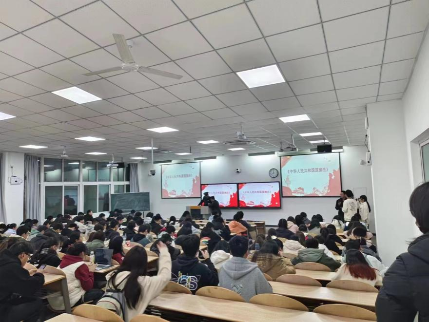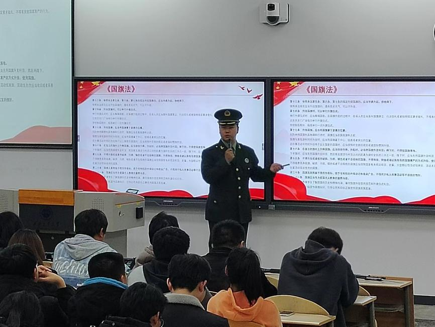 在教2-109开展军事科技讲座,荣幸邀请到校大学生军事协会和校国旗护卫队,来为同学们讲解军事科技相关理论知识,帮助同学们了解国际环境,树立国防知识,从而更好地全面把握新时代新征程党和国家事业发展新要求、人民群众新期待,将来积极投入到国家安全建设当中。