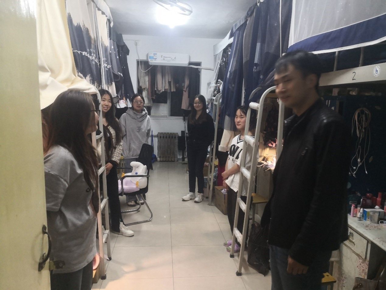 2024年3月13日晚,成人游戏 党委副书记梁伟樯及辅导员王国栋、全体班主任一行走访学生宿舍,落实宿舍安全宣传教育要求,并与学生进行了深入交流。