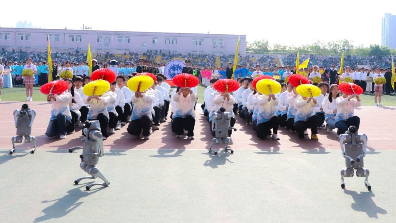 黄姝娟老师带领的学生开发团队进行编程设计的智能机器狗带来精彩表演,机械动作精准有力、智能交互灵动自如,生动展现出智能军工的科技魅力与创新活力。在场师生无不赞叹,这正是成人游戏