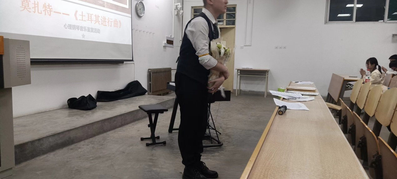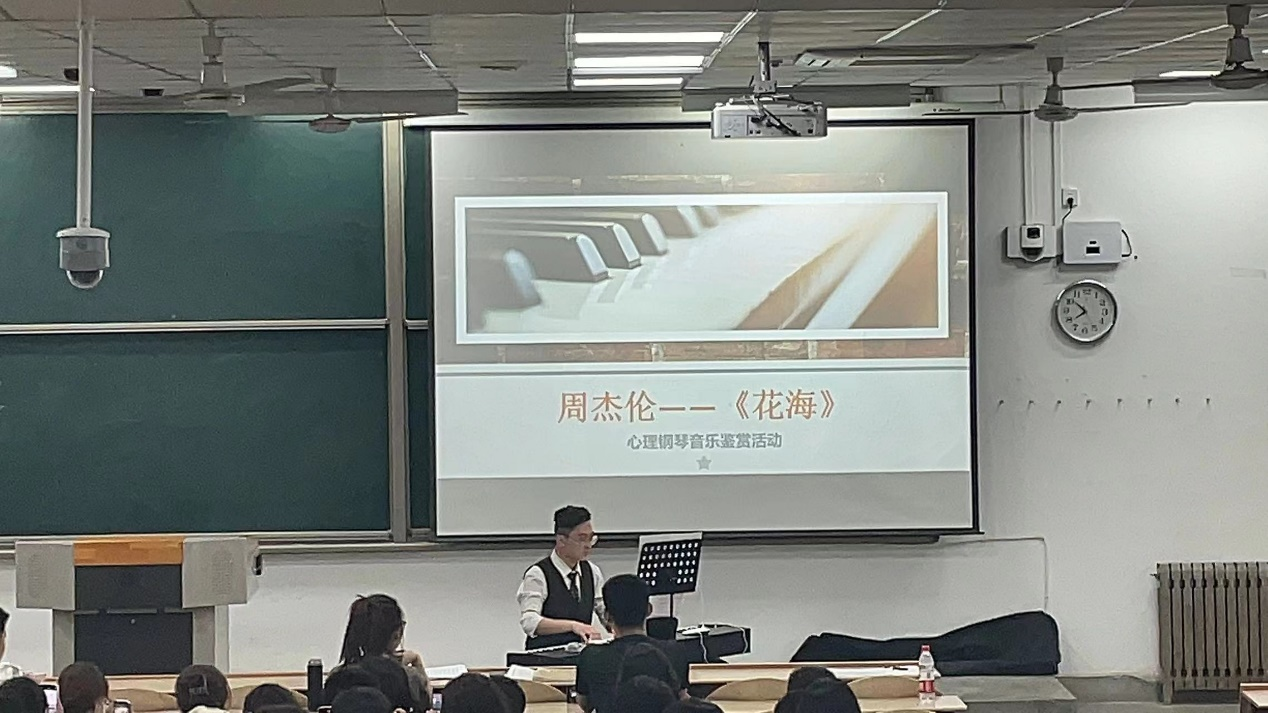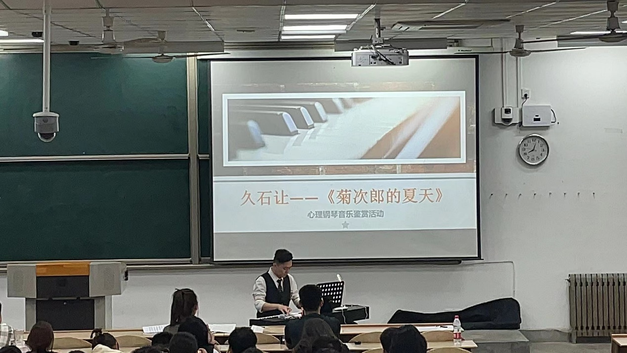 心理部在王国栋老师的指导下,由22级研究生暨心理委员李瀚岳表演,本科生和研究生一起参加的“琴声悦耳,治愈心灵”心理钢琴音乐鉴赏活动,于4月16日晚7点到9点在教一开展。