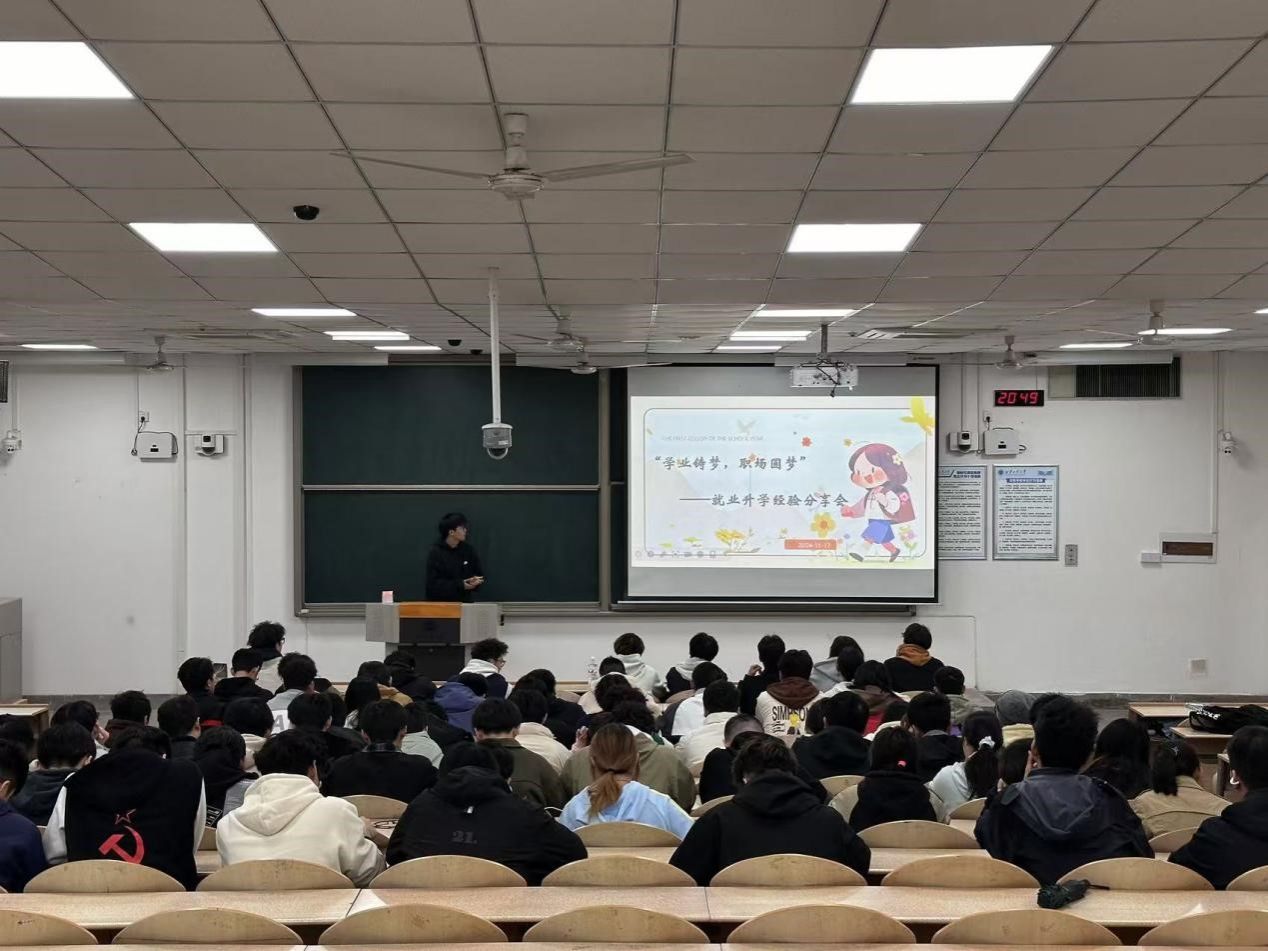 于教1-102开展了“学业铸梦,职场圆梦”的就业升学分享会。此次活动由李欣岫学长作为分享人为大家介绍自己在升学与就业方面的经验。